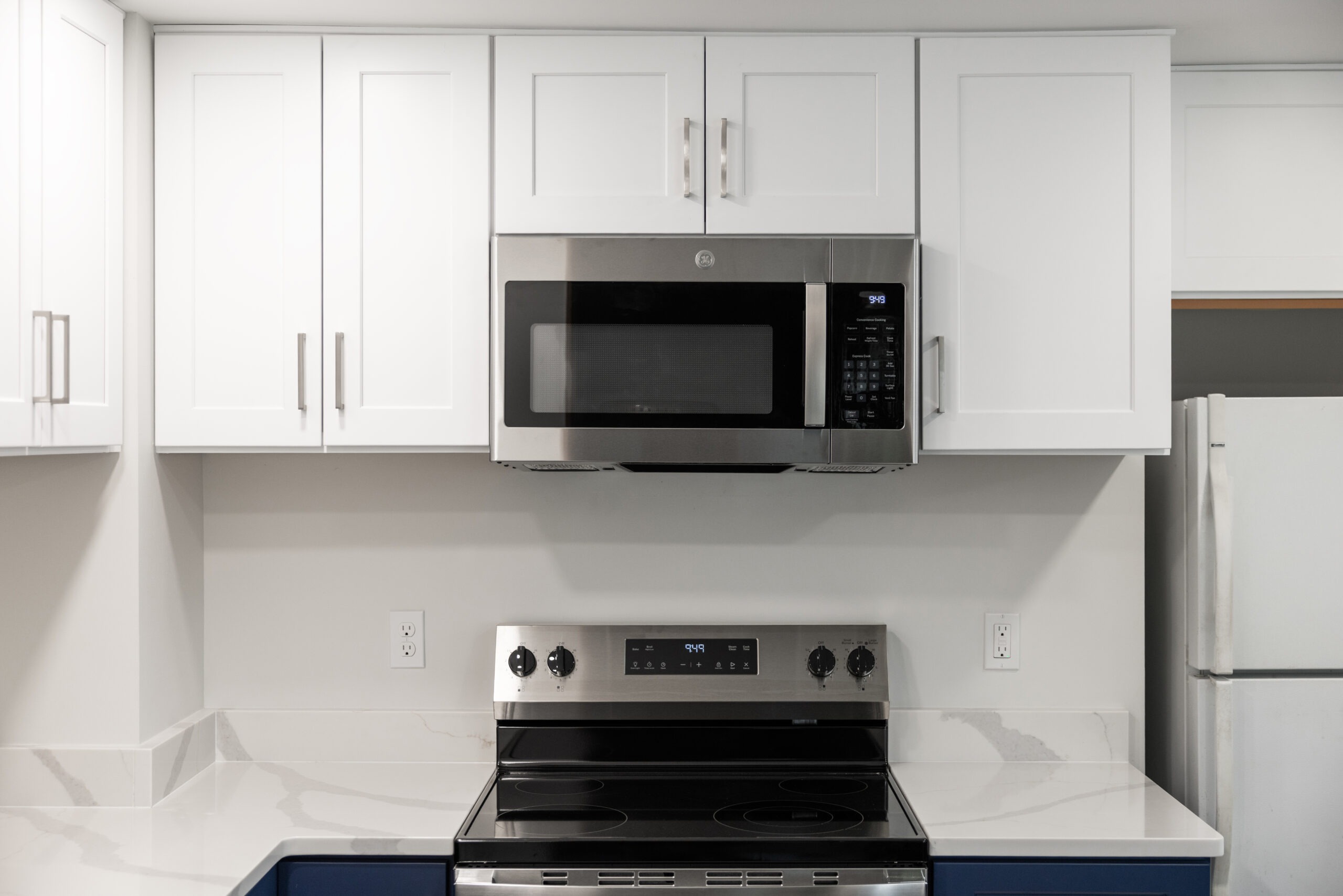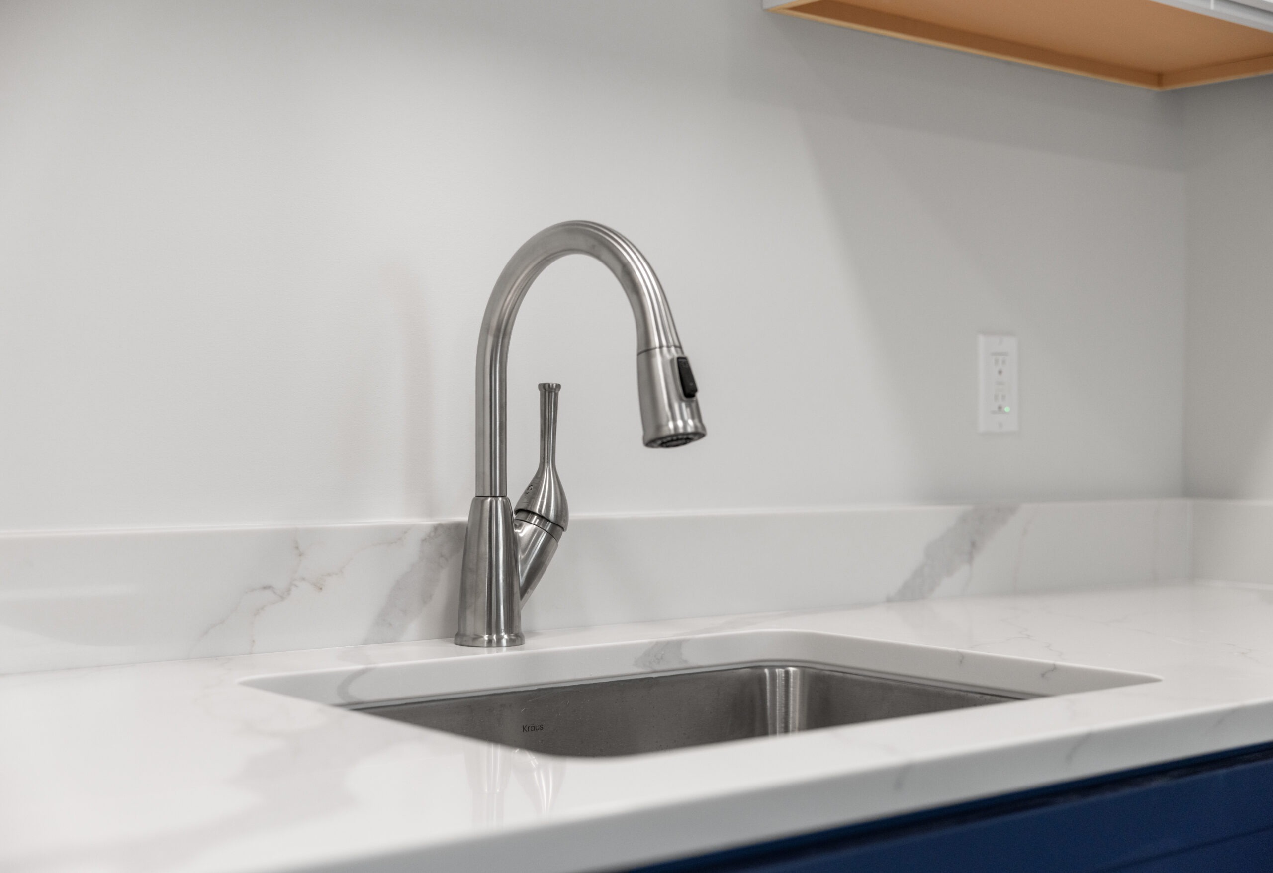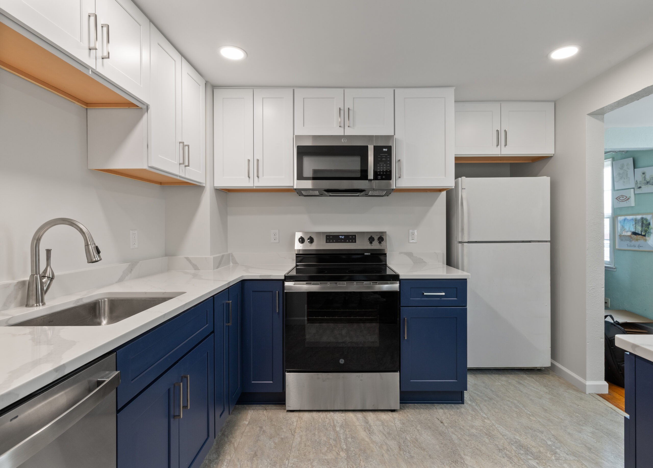 Materials used: Luxury Vinyl Tile, Quartz, GE Appliances, ProCraft Cabinets, Delta faucet