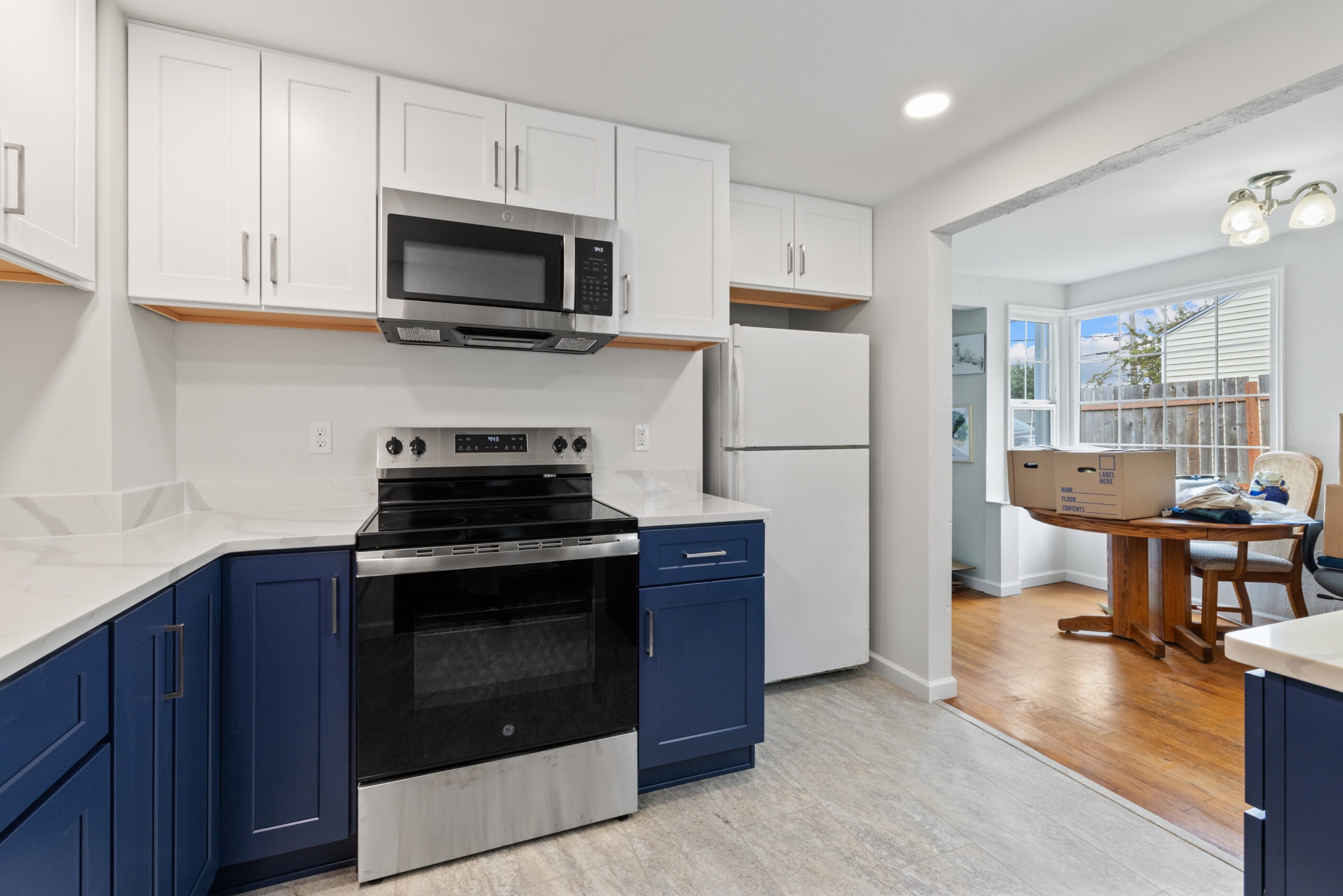 New baseboard in the kitchen and new paint throughout kitchen and adjacent dining room to give the entire space a clean, new look.